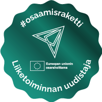 Marjaana kävi tänä vuonna Osaamisraketti-valmennuksen, josta sai hyvien vinkkien, uusien ajatusten ja oppien lisäksi myös tällaisen hienon ”Liiketoiminnan uudistaja” -osaamismerkin!
